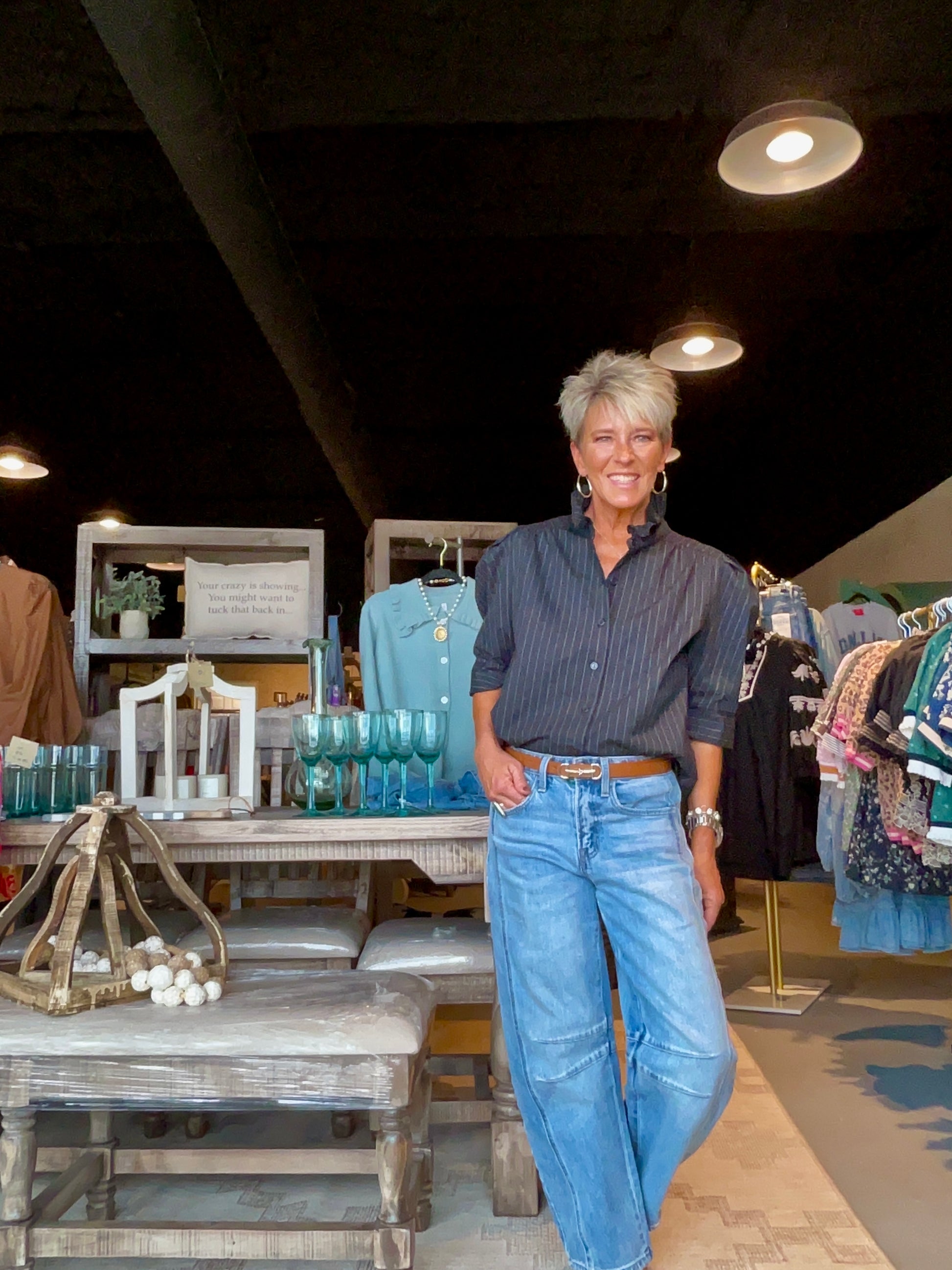 Black Pinstripe Ruffle Collar Puff Sleeve Shirt