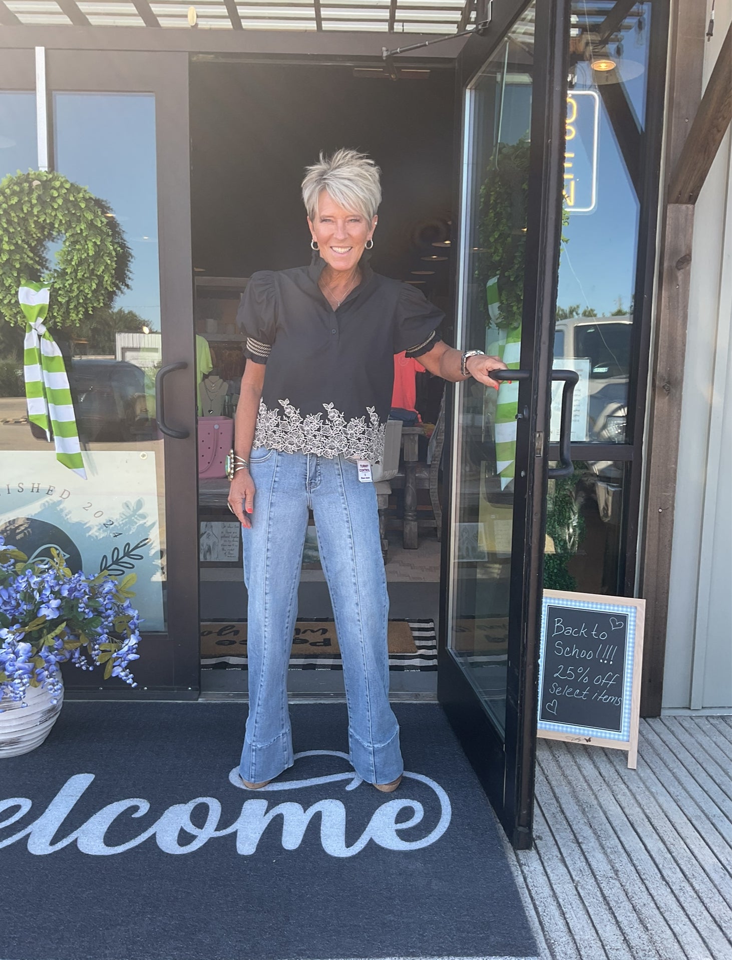 Black Short Sleeve with Cream Embroidery