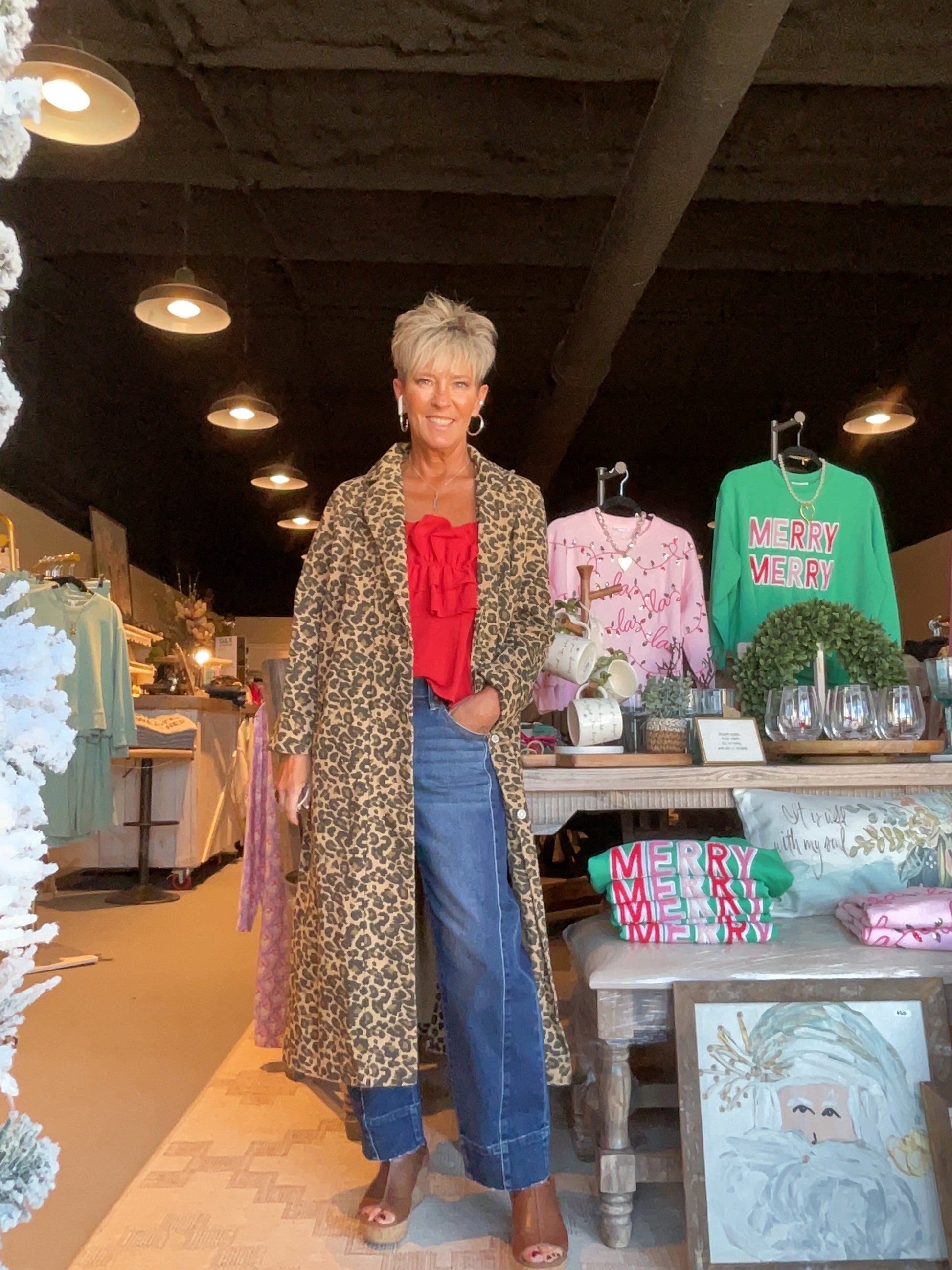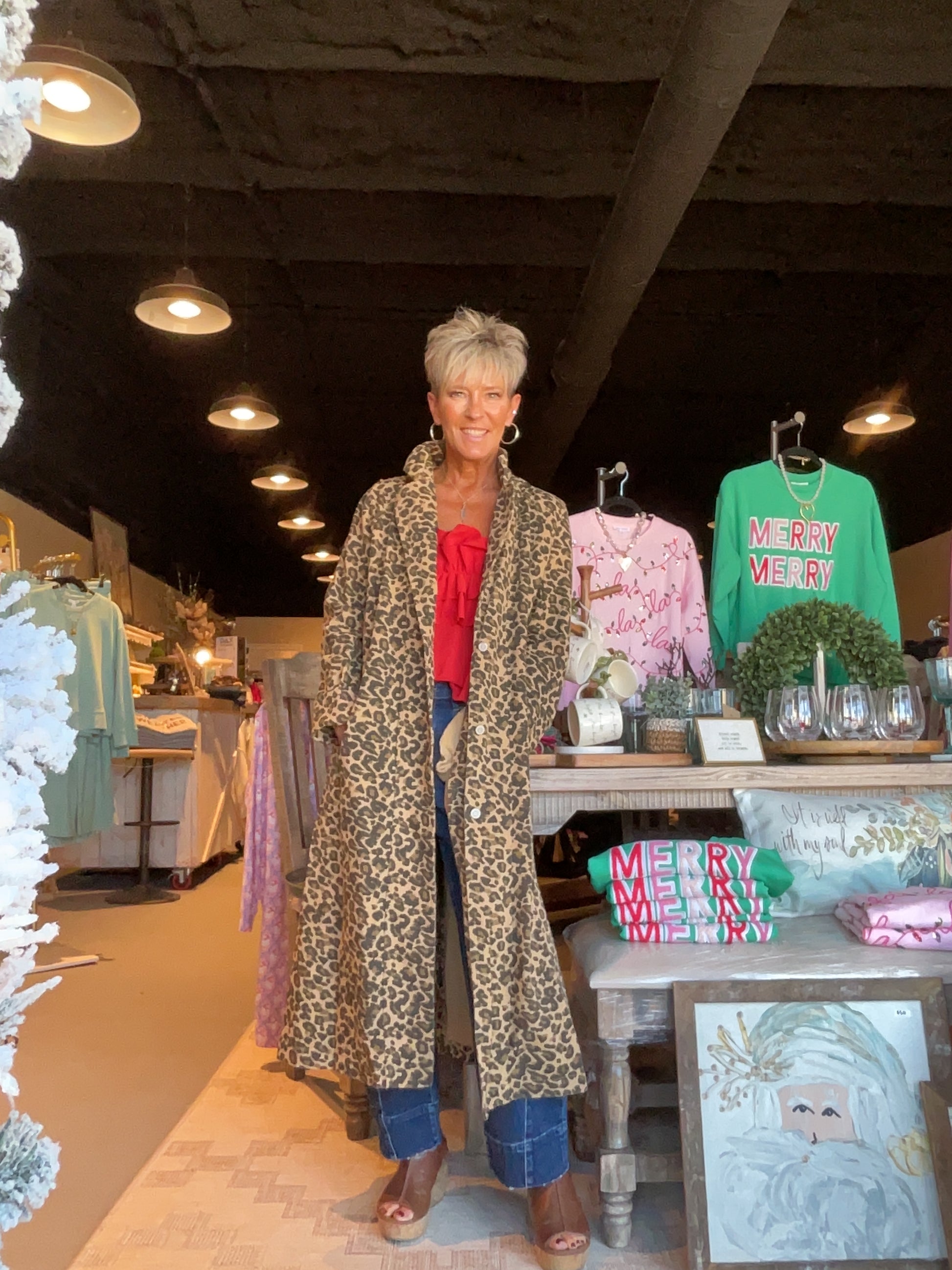 Leopard Denim Front Button Closure Knotched Lapel Color Duster Jacket Taupe Leopard