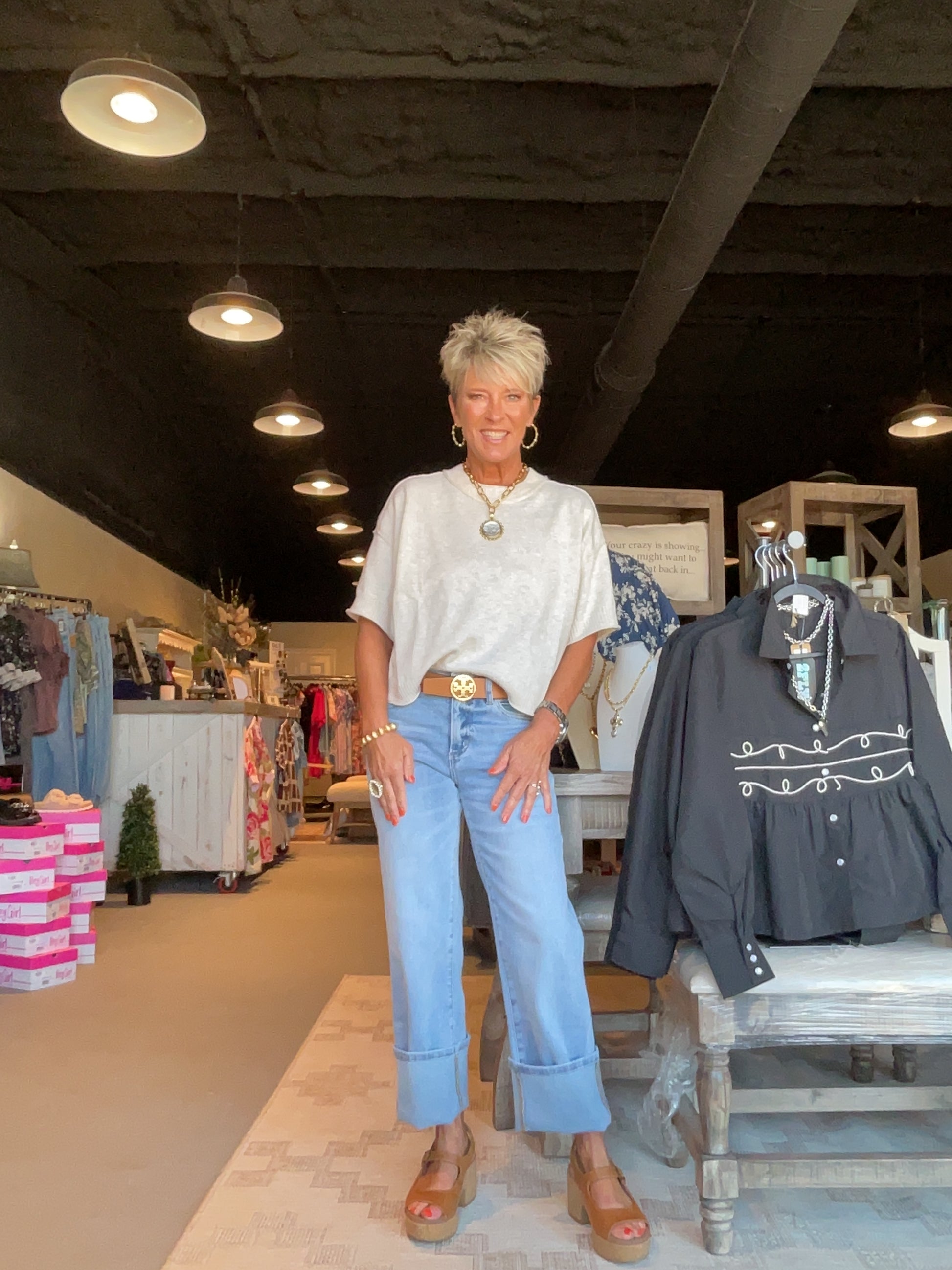 EE26 Sand Color Round Neck Short Sleeve Sweater