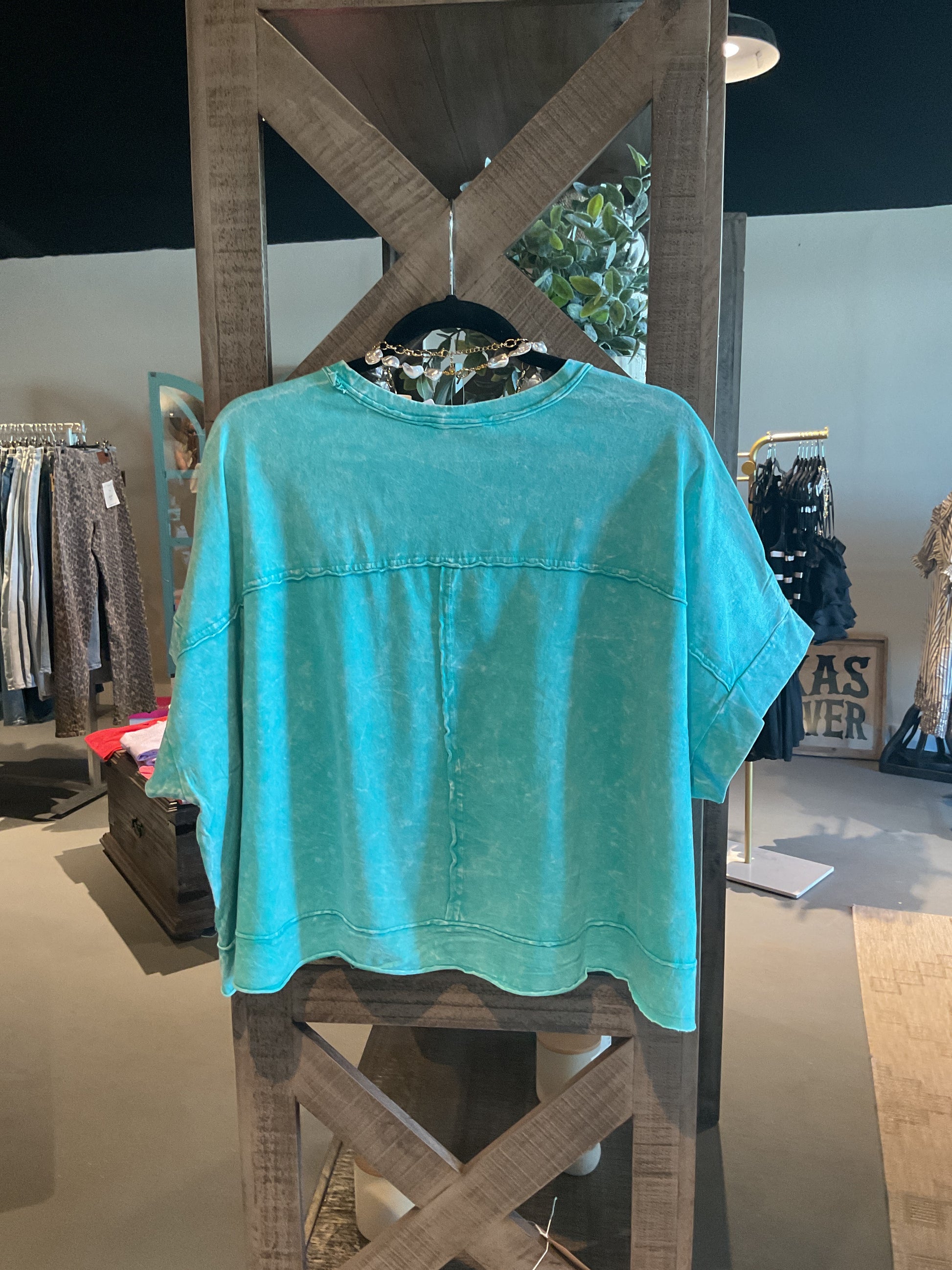 ZN54 Turquoise Halo Snow Washed Oversized Crop Box Tee